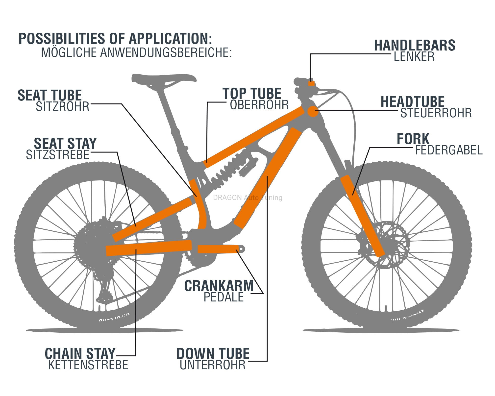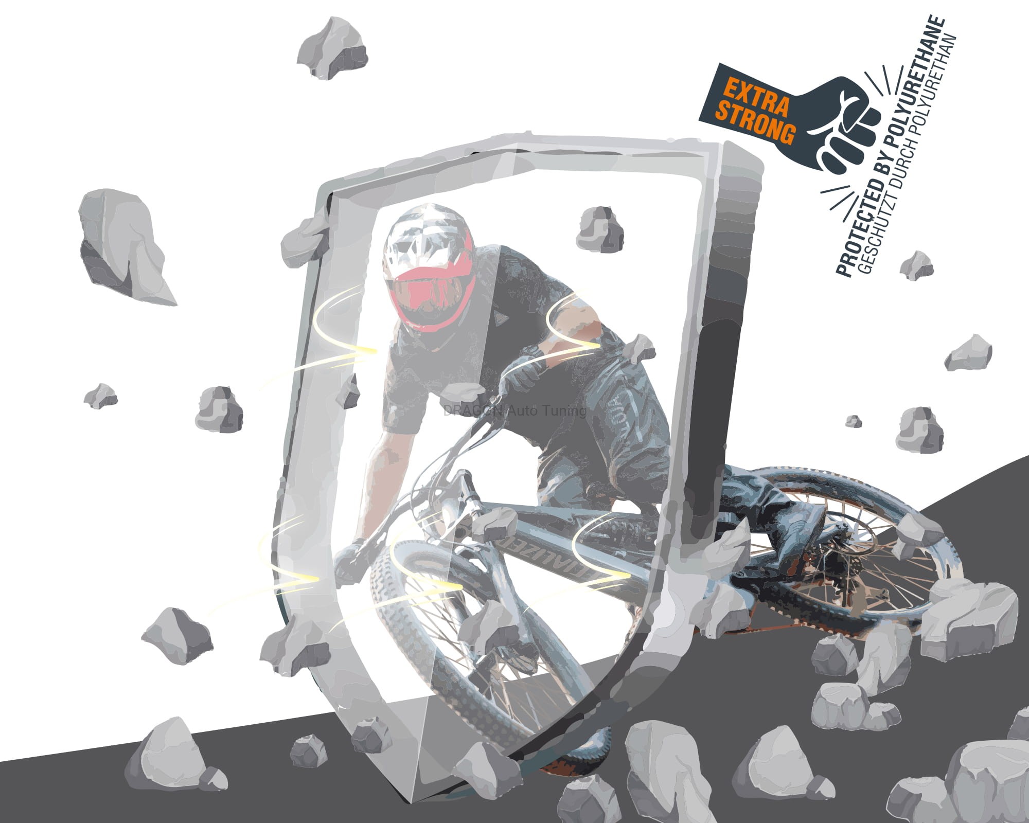 - DZIAŁA JAK FOLIA OCHRONNA: Chroni ramę przed kamieniami, zarysowaniami, zużyciem i utrzymuje wartość roweru.